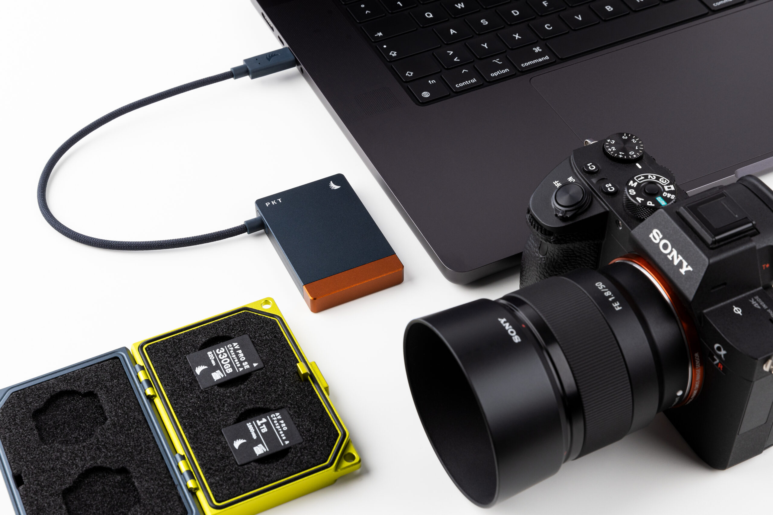 Brzo prenosi velike video i foto datoteke pri neprekidnim brzinama prenosa koristeći USB 3.2 Gen 2k2 u povezivanju do 20 Gb/s. Lagani, kompaktni i napravljeni od tvrdog anodiziranog aluminijuma, Angelbird čitači kartica PKT su napravljeni da izdrže realnost kreativne produkcije u pokretu. Ugrađeni USB-C port za povezivanje Solid Connect™ obezbeđuje bezbednu vezu sa glavnim računarom tokom prenosa podataka. Čitač kartica PKT takođe lako obavlja više zadataka kao pouzdan eksterni modul za snimanje ili proširenje skladištenja, obezbeđujući konzistentno glatki kvalitet podataka.